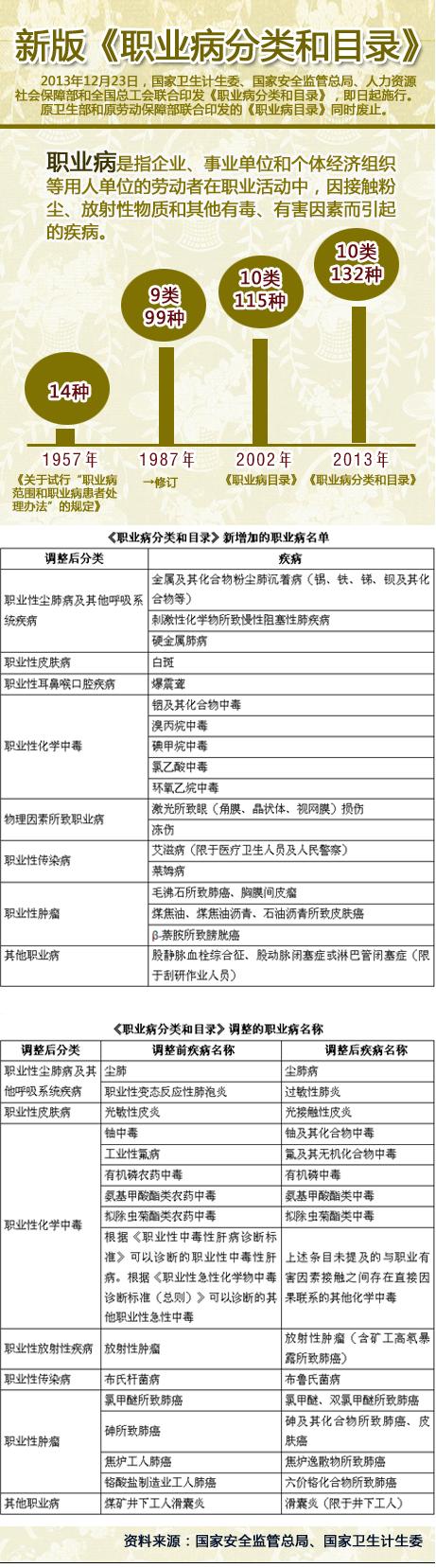 摘要: 2013年12月23日,國家衛(wèi)生計(jì)生委、國家安全監(jiān)管總局、人力資源社會保障部和全國總工會聯(lián)合印發(fā)《職業(yè)病分類和目錄》,即日起施行。原衛(wèi)生部和原勞動保障部聯(lián)合印發(fā)的《職業(yè)病目錄》同時(shí)廢止。