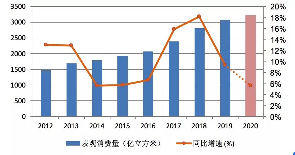 中國石油經(jīng)濟技術(shù)研究院今年年初預(yù)測,我國2020年天然氣消費量將達到3300億立方米,同比增速8.6%。