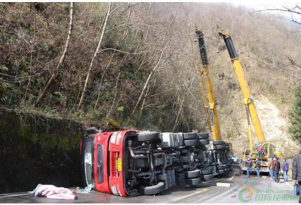 消防隊(duì)員10時(shí)48分到達(dá)現(xiàn)場(chǎng),偵查發(fā)現(xiàn)天然氣槽車側(cè)翻在道路靠山體一旁。經(jīng)偵察,事故車輛為一輛裝載22噸液化天然氣槽罐車側(cè)翻,事故發(fā)生后車內(nèi)兩名司乘人員自行撤離出,身體并無(wú)大礙,車輛罐體表面無(wú)破損,未發(fā)生泄漏。