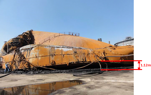 875#罐被燒整體坍塌,南側(cè)罐壁由15.86米坍塌至4.35米,見圖2。